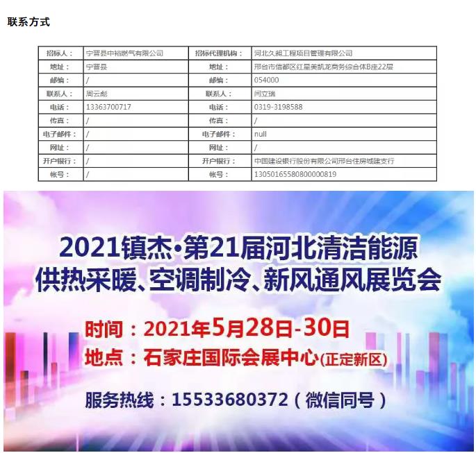 2021河北暖通展-2021年宁晋县农村气代煤采暖设备(壁挂炉)采购及安装入围项目招标公告