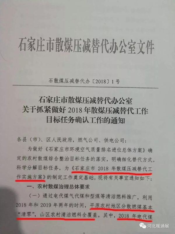 石家庄市散煤压减替代办公室---关于抓紧做好2018年散煤压减替代工作目标任务确认工作的通知